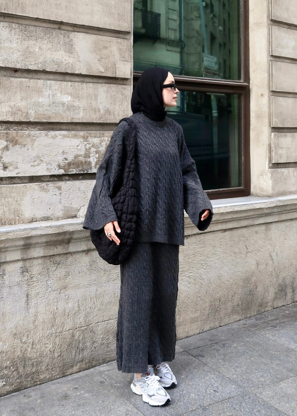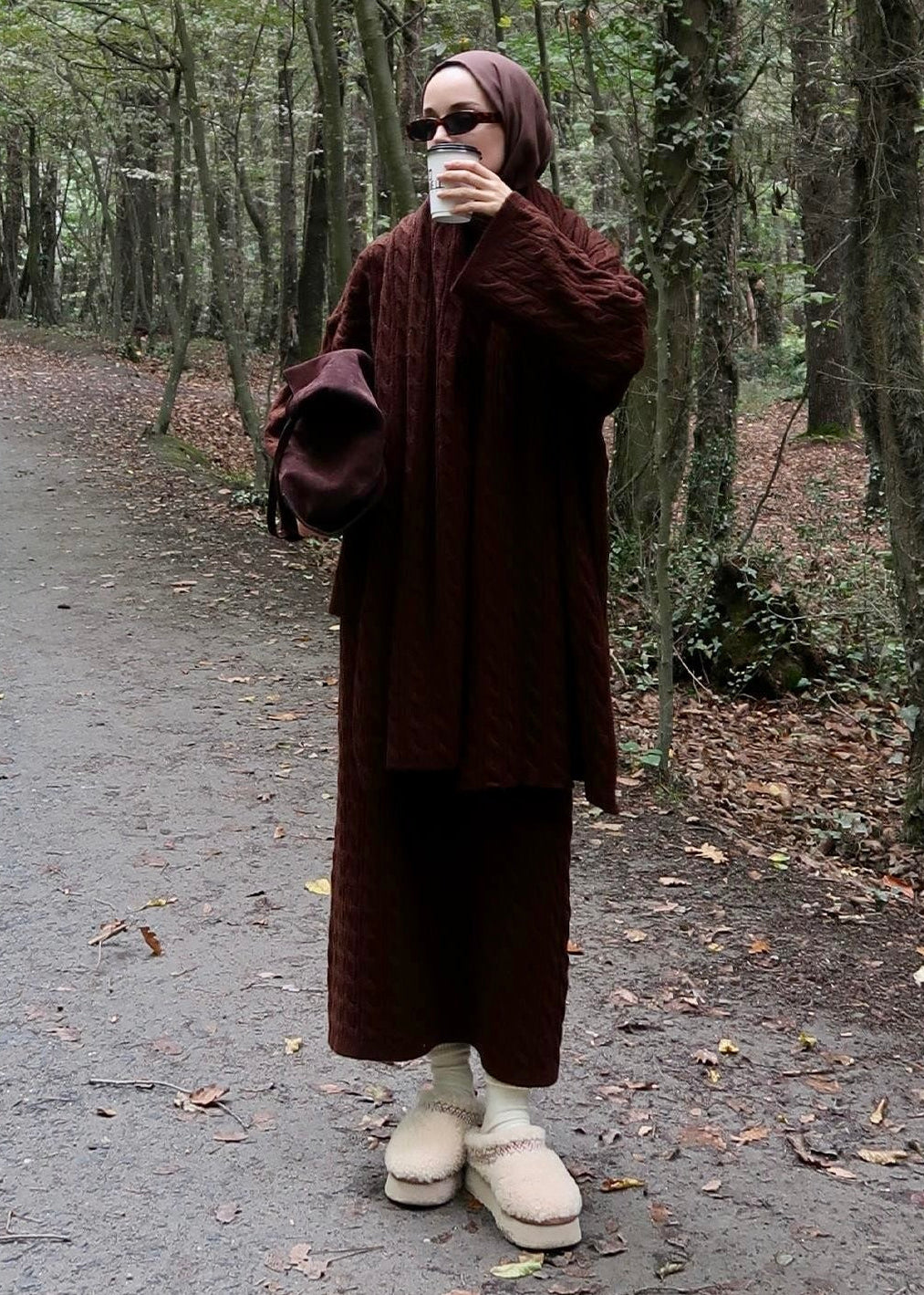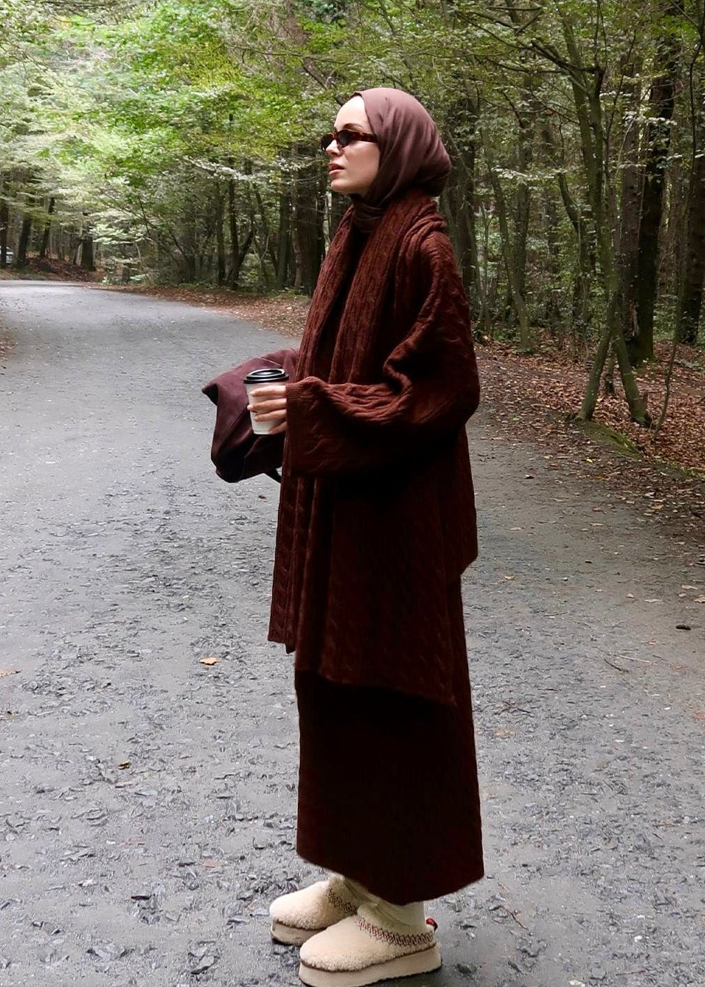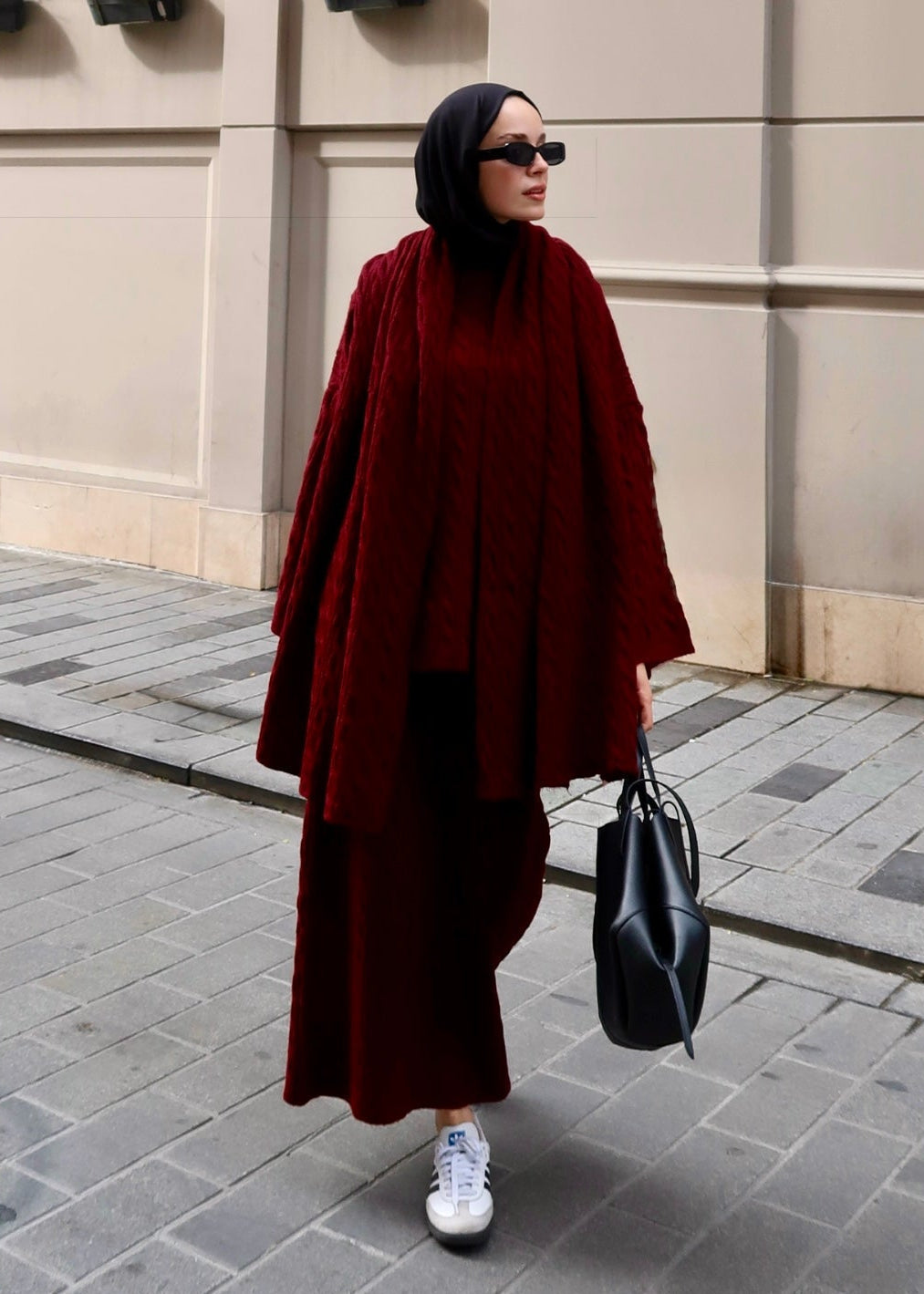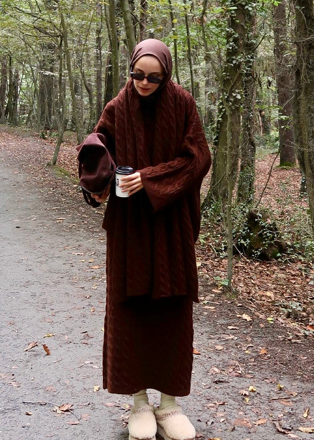 Winter Elegance Knit Set 3-pieces modest knit outfit combining elegance, warmth, and comfort for hijab women this winter.