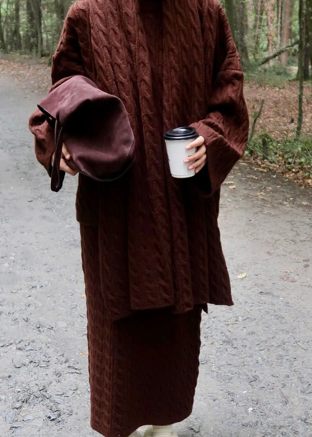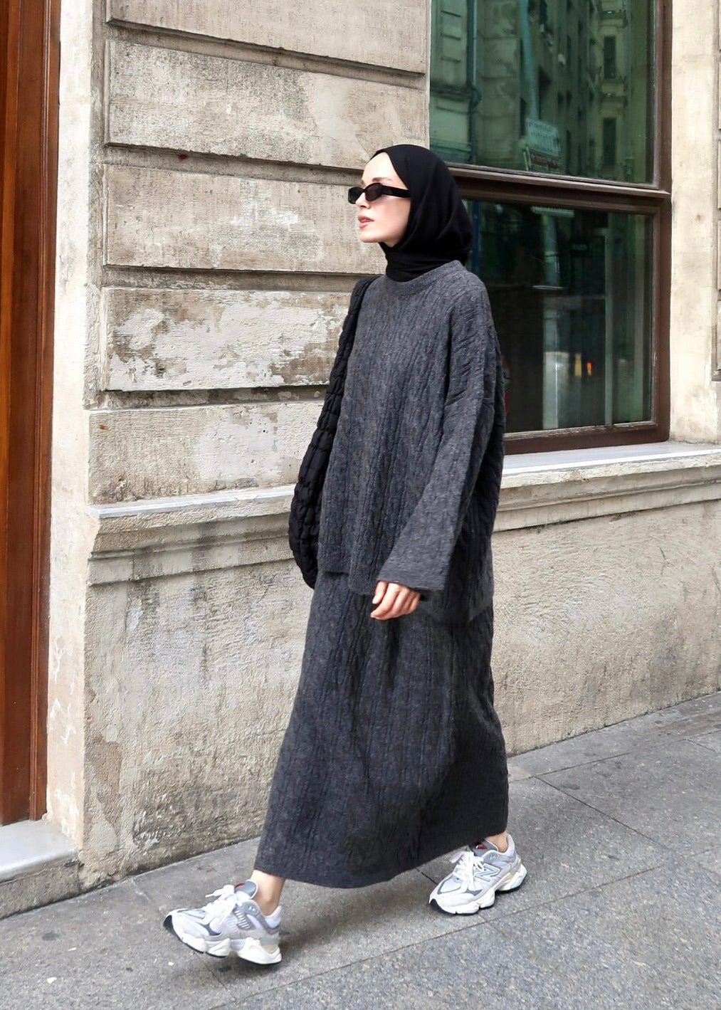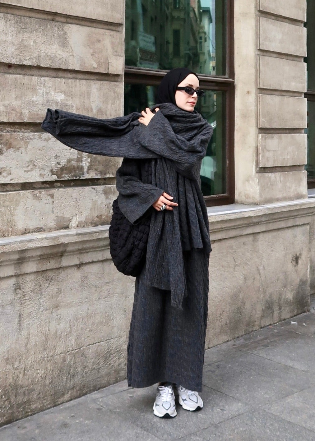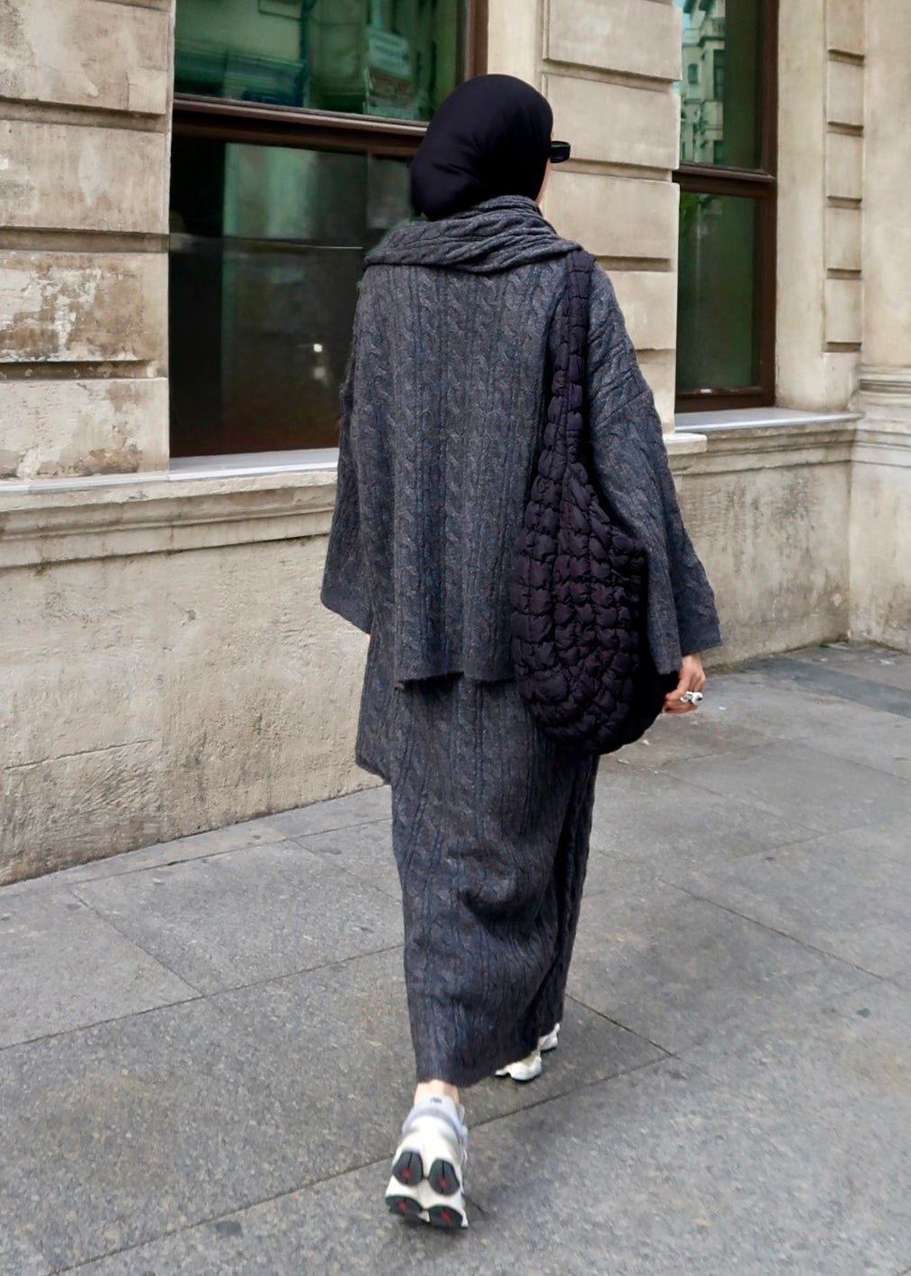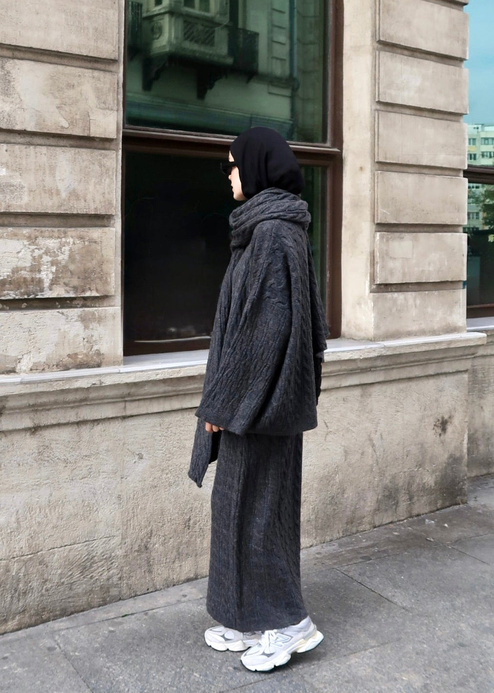 Winter Elegance Knit Set 3-pieces modest knit outfit combining elegance, warmth, and comfort for hijab women this winter.